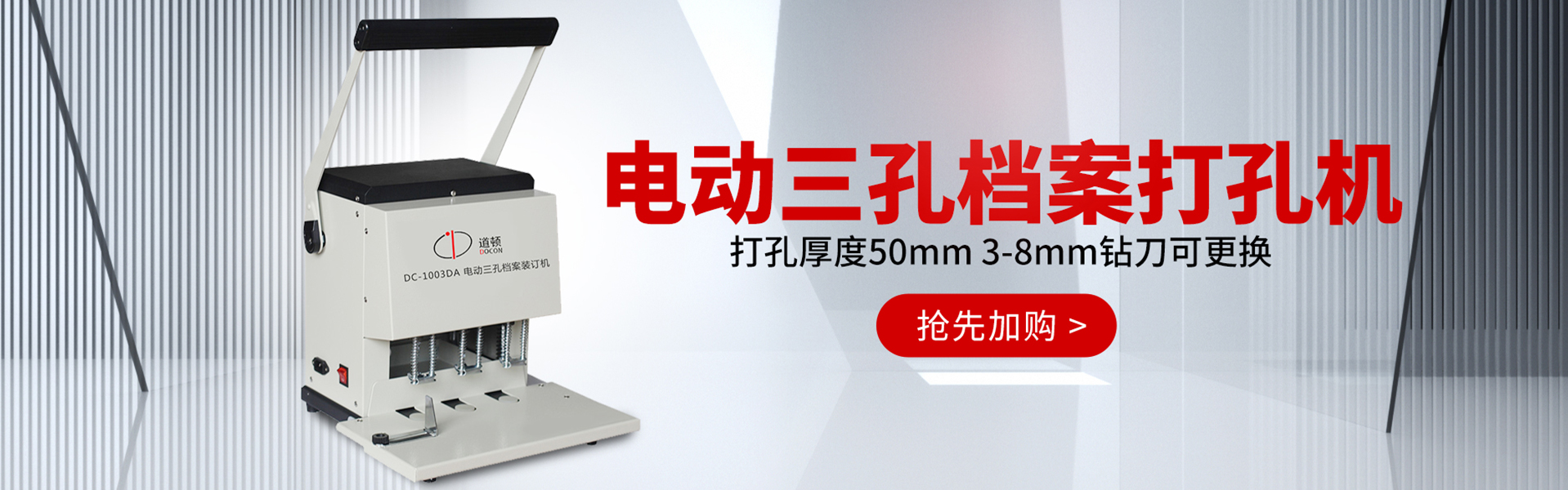 三孔檔案打孔裝訂機分為手動和電動,一次可打三孔,型號多樣,裝訂形式為將打過孔的文件棉線裝訂、檔案盒裝訂、檔案夾裝訂等,標(biāo)準(zhǔn)83mm孔距,滿足政府機關(guān)單位檔案文件裝訂標(biāo)準(zhǔn)。